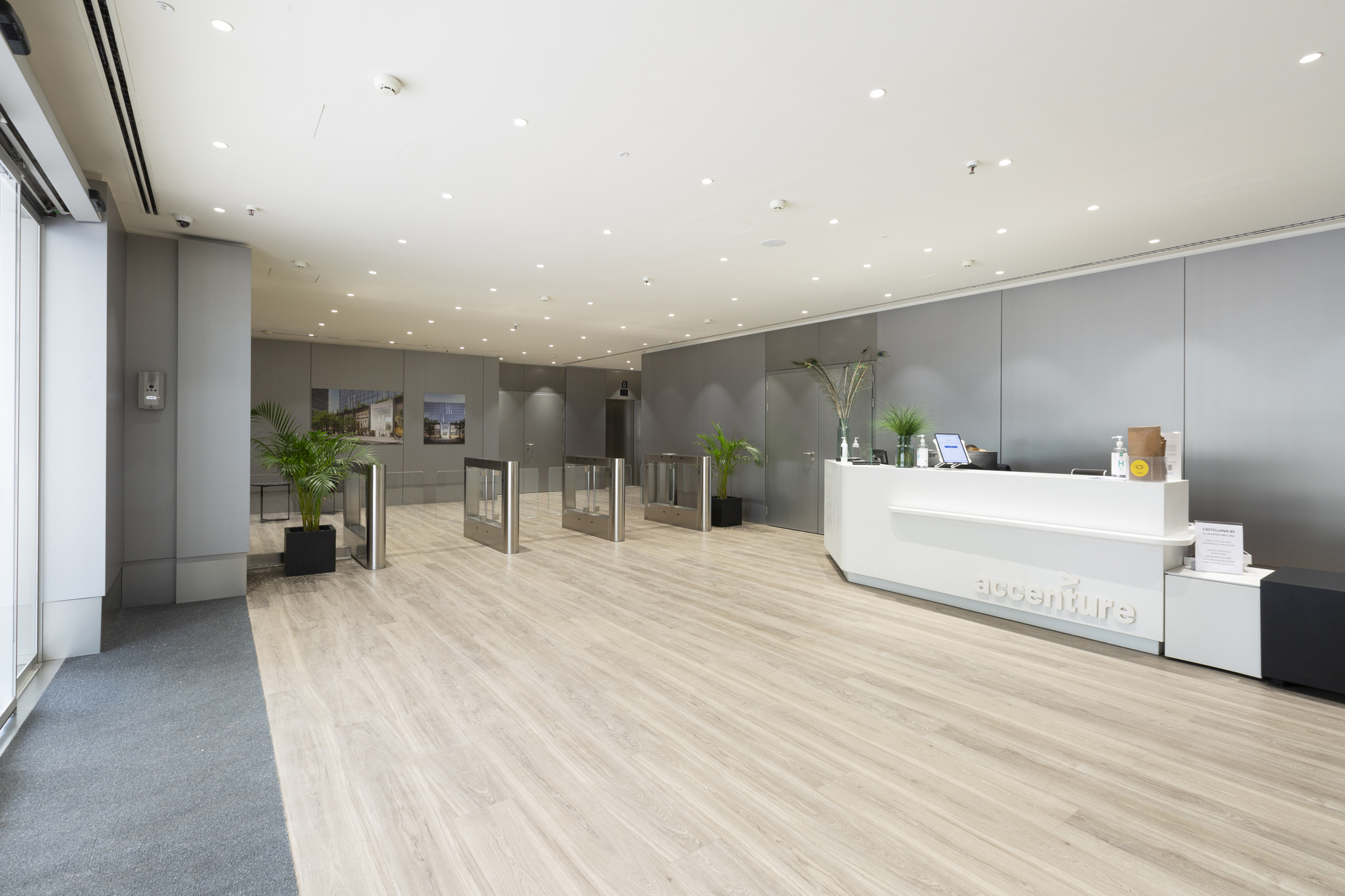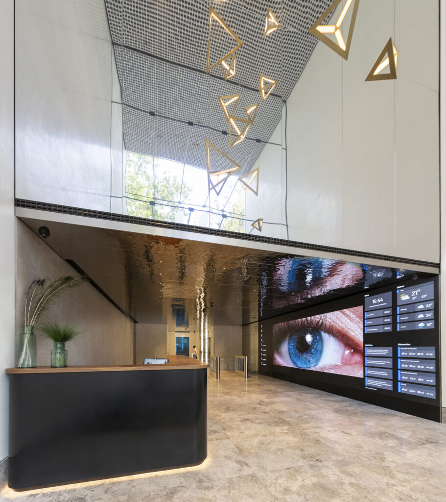 En la primera fase Empty se encargó de la demolición parcial de la fachada existente y de la apertura de grandes huecos de forjado en las plantas primera y segunda, con el objetivo de implementar el refuerzo estructural, necesario para albergar la instalación de la doble piel de fachadas acristaladas en el exterior y en el acceso al edificio. Una vez ejecutada la fase estructural, se realizaron todos los acabados del nuevo vestíbulo, en coordinación con los trabajos de instalaciones.